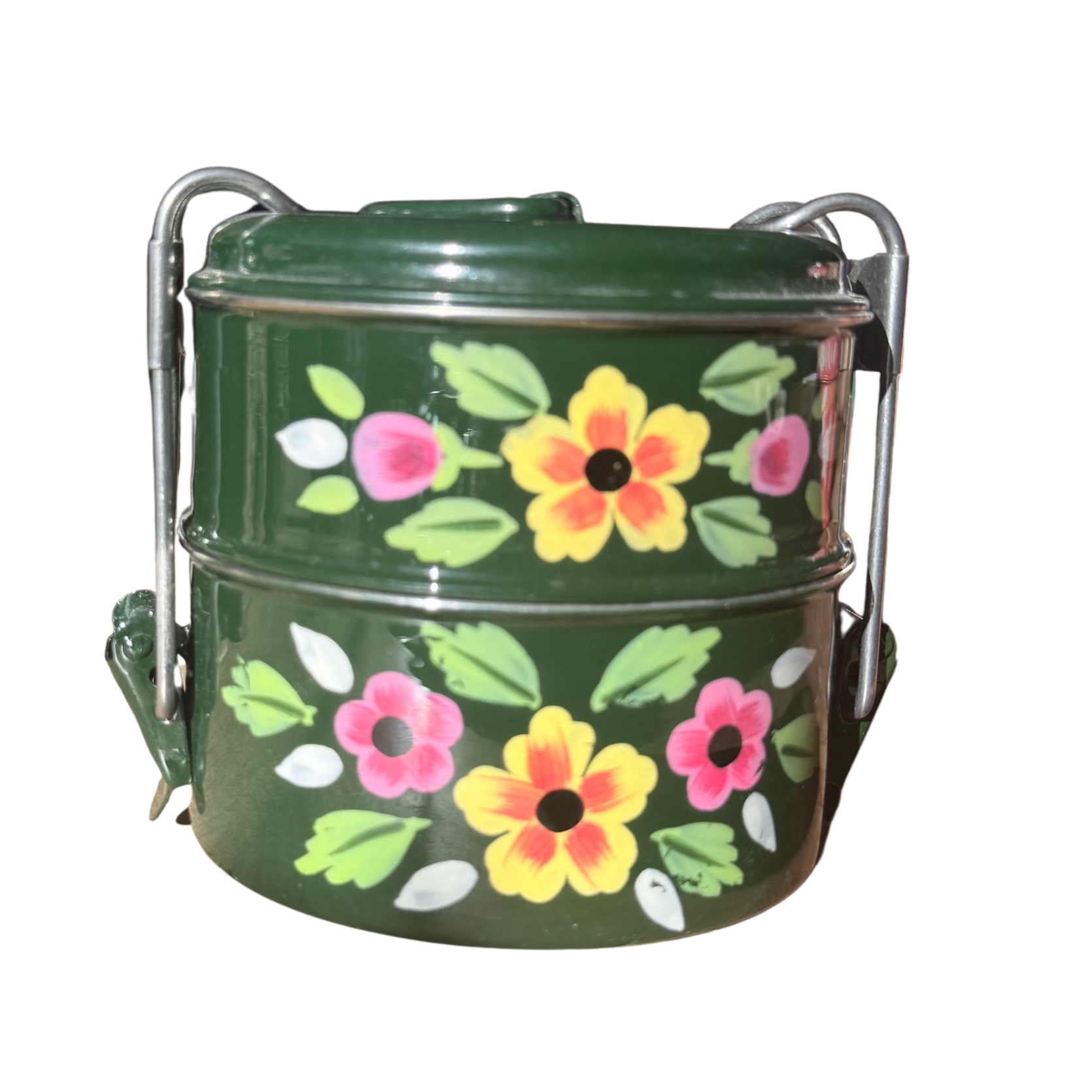 “Masala Dabbas” or Spice Boxes are an ubiquitous fixture in Indian kitchens. The small bowls are filled with the most frequently used spices to make it more efficient an easy. Our unique painted stainless steel spice boxes are one of a kind hand made in India. Fill them with your choice of spices, Indian or Western. A pretty and useful addition to your kitchens. And an unique gift!